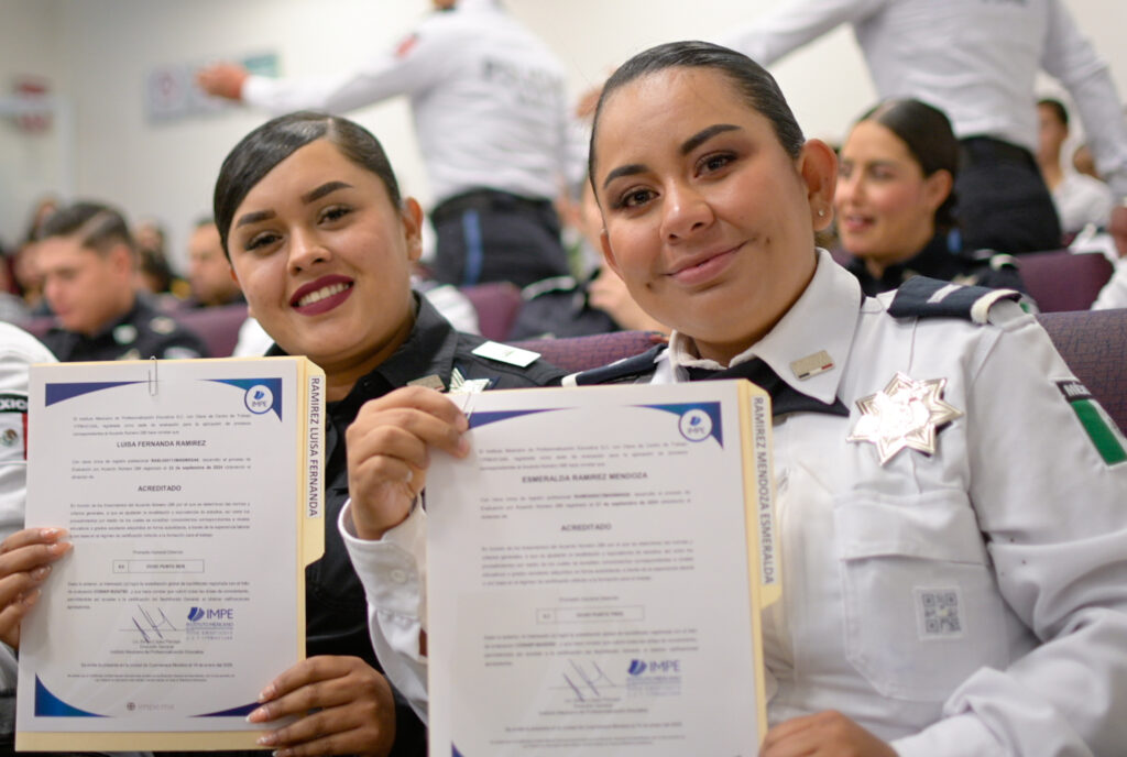 Además de la entrega de los certificados, se otorgaron reconocimientos a cinco policías municipales por su destacada labor en la protección y servicio a la comunidad. Fueron galardonados Christian Andrés Aguilera Chávez y Jairo Manuel Dávila Moreno, del grupo motorizado Centauro; Mario Medina de Luna y Javier Rodríguez Ramírez, del destacamento Insurgentes; y Francisco Marmolejo Salazar, del destacamento Morelos.