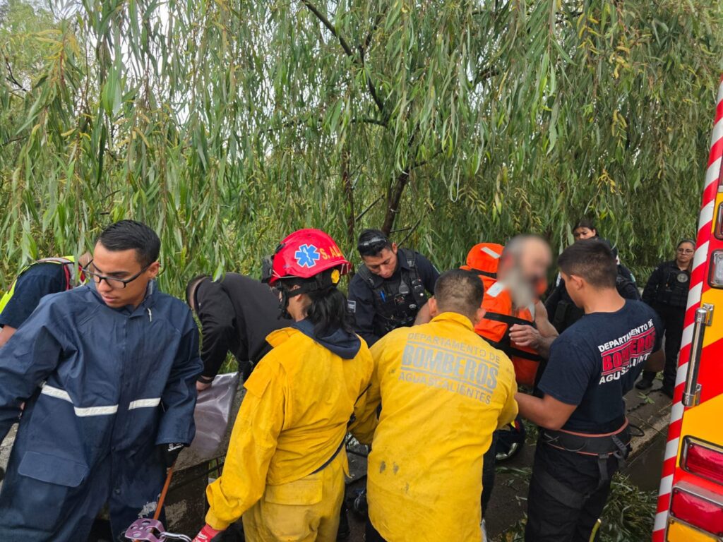 BOMBEROS DEL MUNICIPIO DE AGUASCALIENTES RESCATAN A PERSONA EN EL ARROYO EL CEDAZO