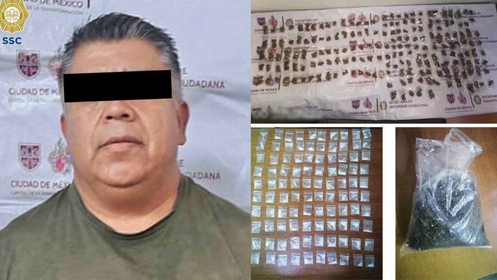 El detenido cuenta con un historial delictivo que incluye tres ingresos al Sistema Penitenciario de la Ciudad de México: en 1997 por el delito de robo; en 2005 por robo agravado calificado; y en 2024 por delitos contra la salud y posesión de cartuchos de uso explosivo.