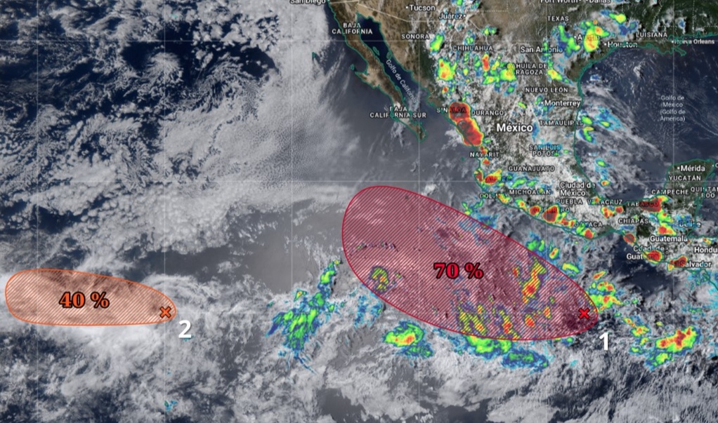 La Comisión Nacional del Agua (Conagua), a través del Sistema Meteorológico Nacional (SMN), emitió este lunes una alerta preventiva ante la posible formación de dos ciclones tropicales en el océano Pacífico, como parte de la activa temporada de huracanes 2025.