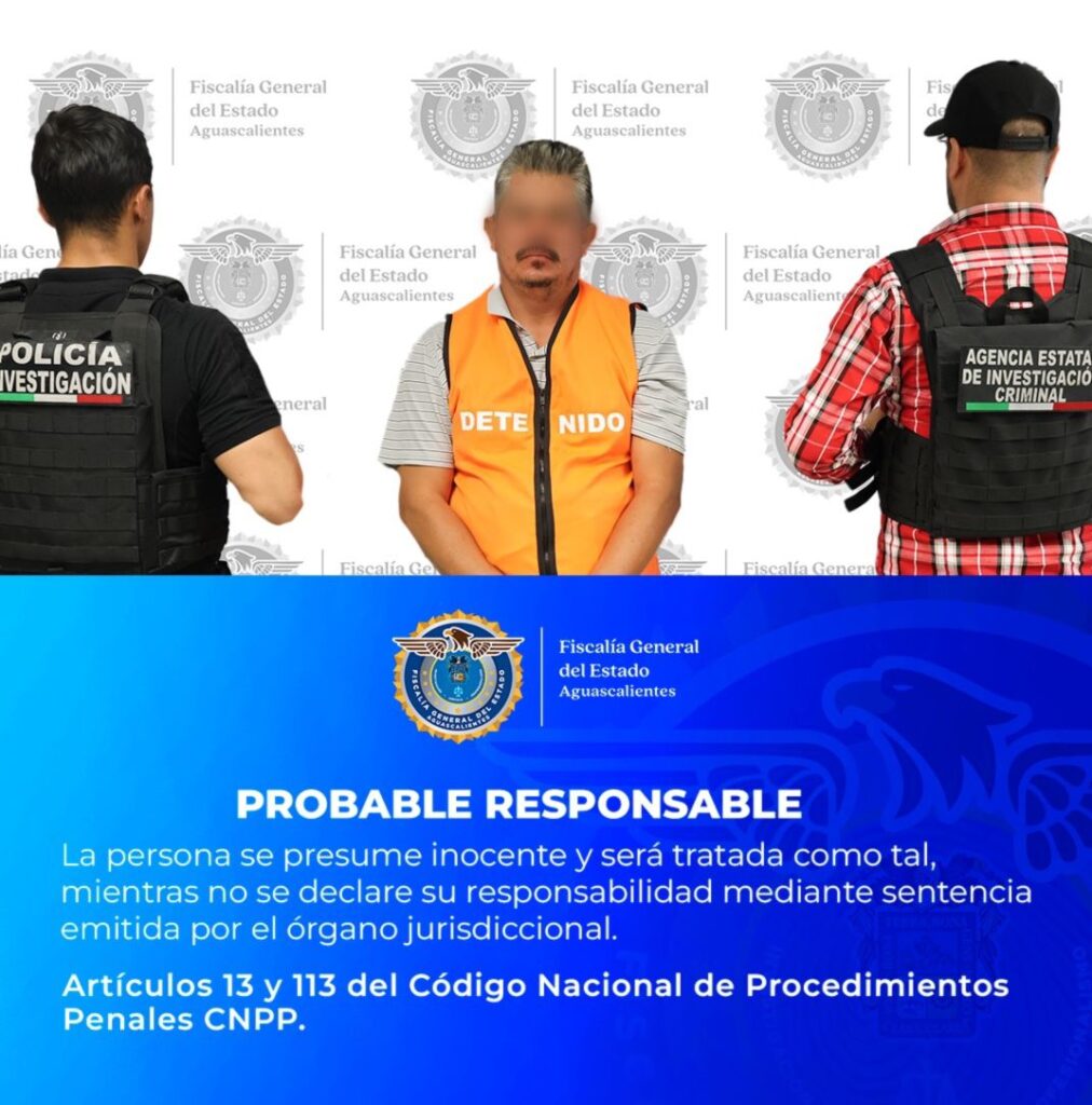La Fiscalía General del Estado de Aguascalientes informó sobre la detención de un objetivo prioritario identificado como presunto generador de violencia en la zona norte de la entidad y en la región limítrofe con Zacatecas.