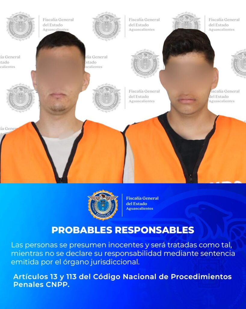 La Fiscalía General del Estado de Aguascalientes, obtuvo auto de vinculación a proceso en contra de Jobsan Alexis “N” y Uriel Ismael “N”, presuntos generadores de violencia, por su probable participación en el delito de homicidio doloso calificado con premeditación y ventaja.