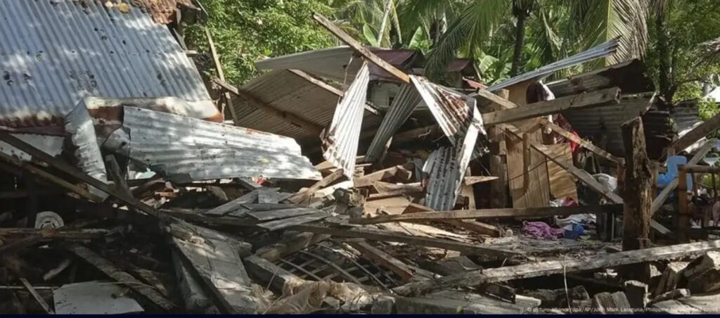 La oficina de la Cruz Roja de Filipinas en la provincia de Masbate publicó en las redes sociales imágenes de las consecuencias del terremoto, que provocó profundas gritas en calles y carreteras, desconchó fachadas de edificios de apartamentos, causó destrozos en el mercado público y en el puerto de Cataingan y derrumbó decenas de viviendas endebles ubicadas en las zonas más empobrecidas de la costa.