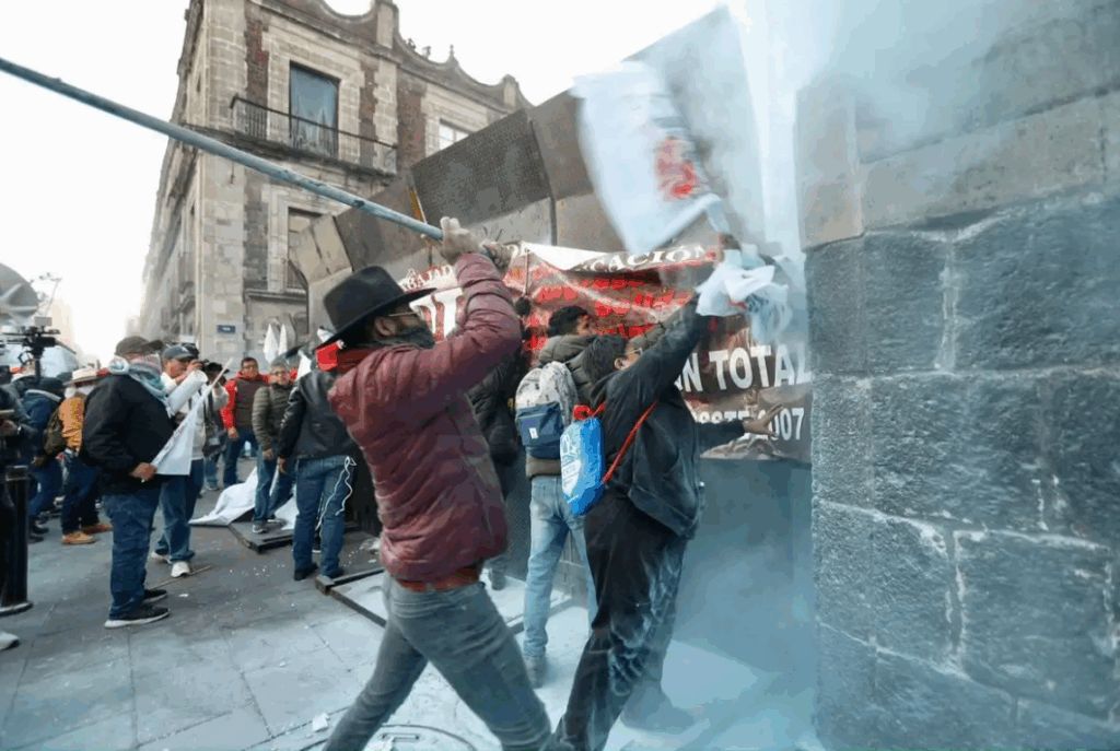 Como parte de su Jornada Nacional de Lucha de 48 horas, los docentes se trasladaron desde la Plaza de la Constitución a la calle Correo Mayor, esquina con Moneda, en donde realizaron una manifestación simbólica mientras se desarrollaba la mañanera del del pueblo, que consistió en golpear constantemente las vallas antimotines de tres metros de altura con objetos, palmadas y puños.
