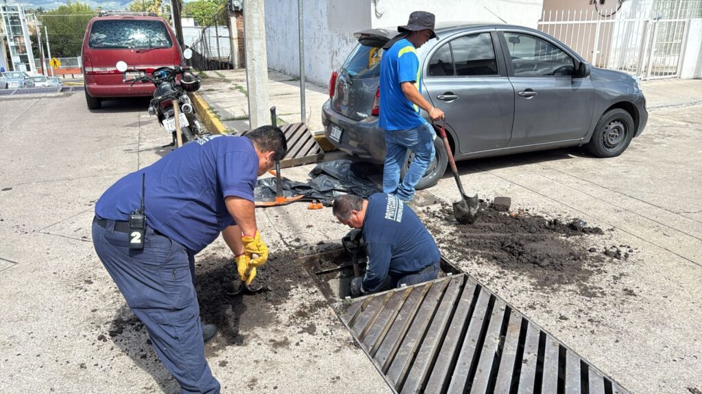 En un operativo conjunto entre la Coordinación General de Delegaciones Urbanas y Rurales, Protección Civil Municipal y el Modelo Integral de Aguas de Aguascalientes (MIAA), se desazolvaron alcantarillas y bocas de tormenta en distintos puntos del Fraccionamiento Moderno, en la zona poniente de la Ciudad.
