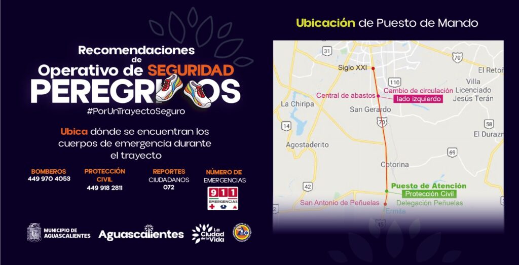 Finalmente, la Coordinación Municipal de Protección Civil emitió una serie de recomendaciones a los feligreses que harán este recorrido: ir bien hidratado y consumir alimentos ricos en vitamina C, caminar en contraflujo del tránsito vehicular, llevar ropa cómoda y de ser posible con reflejantes, procurar realizar la ruta en grupo, no llevar cosas de valor y en todo momento escuchar las recomendaciones de las autoridades.