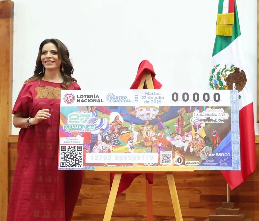 La directora de la Lotería Nacional, Olivia Salomón Vivaldo, presentó este lunes el billete del Sorteo Especial No. 301, que tendrá como figura central a las fiestas de la Guelaguetza 2025, en lo que calificó como “un reconocimiento profundo a lo que esta tierra significa para México”.
