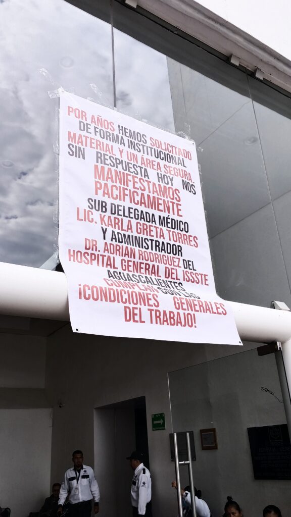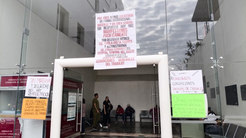 La mañana de este 30 de septiembre de 2025, trabajadores del Servicio de Rehabilitación de la clínica del ISSSTE ubicada sobre avenida Universidad en Aguascalientes realizaron una manifestación para exigir la renovación del equipo utilizado en las terapias.