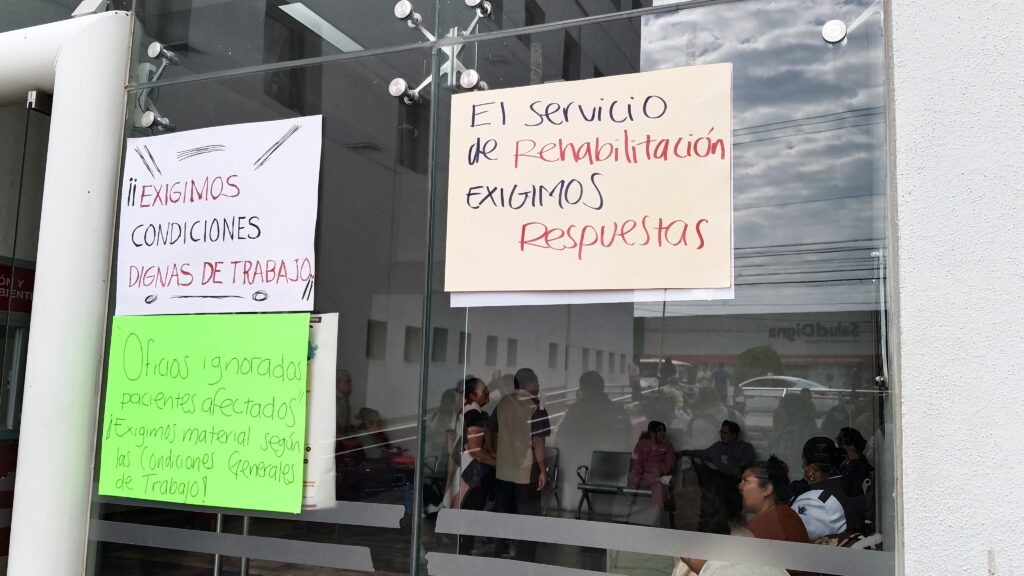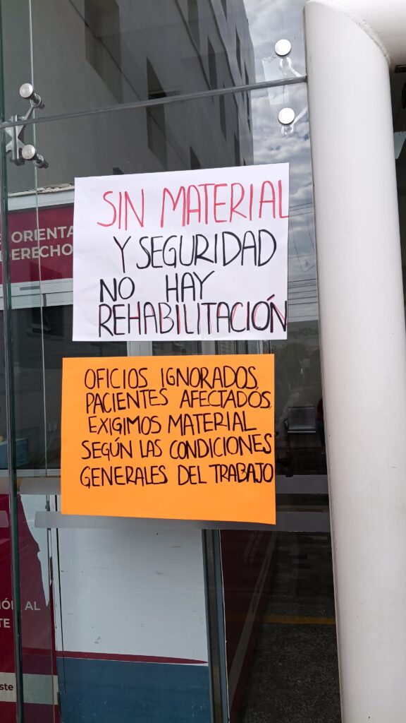 Indicaron que la falta de herramientas adecuadas los ha obligado a enviar a los pacientes ejercicios para realizar en casa, situación que ha generado inconformidad entre los derechohabientes e, incluso, agresiones y humillaciones hacia el personal.