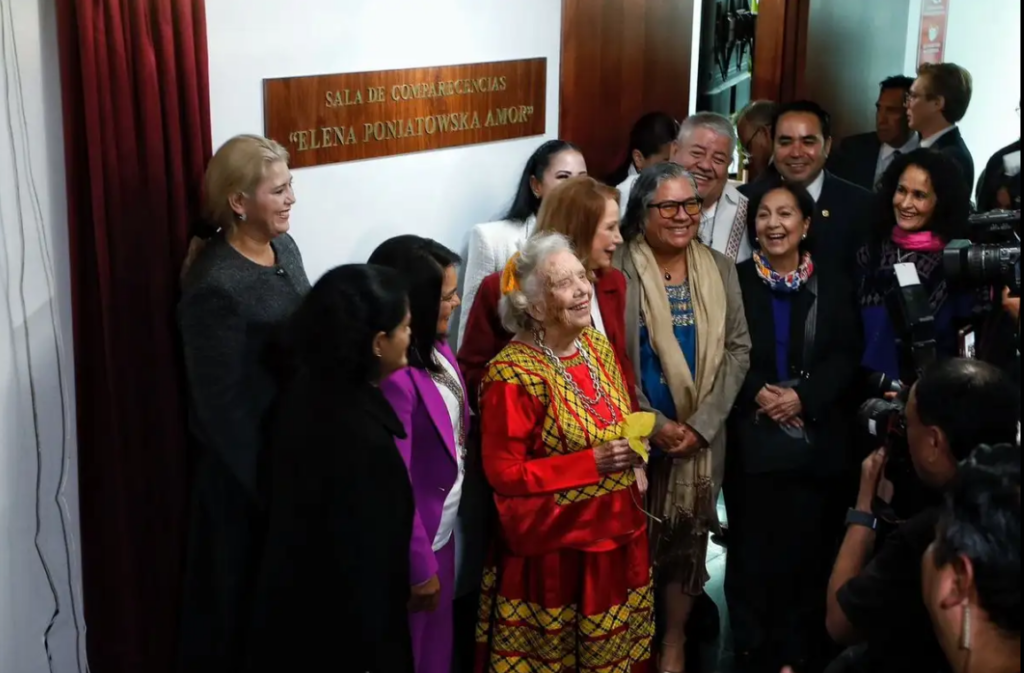 “Este día, al dar el nombre de Elena Poniatowska a la Sala de Comparecencias, reconocemos la labor de una mujer que ha dado luz a muchas historias que, sin su entrega, quizá no habrían tenido sitio en nuestra memoria”, señaló.